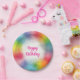 Modern Pink Red Yellow Orange Blue Green  Colourful Custom Script Happy Birthday Text Template Crafts & Party Supplies / Party Supplies / Tableware / Paper & Party Plates / Classic Round Paper Plate.
