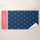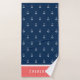 Nautical style towels featuring a white anchor pattern with an editable background colour, click the customize button for access and change the background colour for each respective towel. For the bath towel you can also add your name and to change the coral salmon colour, select the rectangle layer and change its colour.