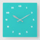 Custom Colours Numbers Font Personalized Turquoise Square Wall Clock