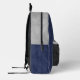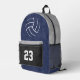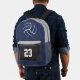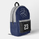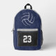 Choose your own colours! This volleyball themed backpack is accented with the image of a minimalist volleyball (only the seams are represented in white) - the front pocket can be personalized with the athlete's name and jersey number - you can customize the backpack's colours--access the Zazzle design tool by pressing the "Edit this design" button above to change the backpack component colours, currently blue, black and light grey - a digitally-created, texture-look graphic overlies the backpack's individual components for a distressed appearance, which can be removed if desired - by katz_d_zynes