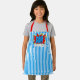 Cool and fun colourful bright blue, red, yellow and white coloured comic book pop art theme inspired motif on a cute white and blue vertical stripes pattern design. With room to customize or personalize with name, monogram, initials, or (limited) text of your choice. Modern and artsy style for the trend savvy and whimsy art loving hip trendsetter, vintage retro look or abstract motif lover. Unique, pretty, decorative, fashionable and trendy birthday or Christmas gift for your loved ones, kids, friends or other family members who love to cook or tinker around in the kitchen.