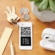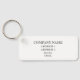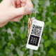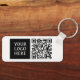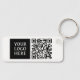 Keychain customized with your company logo and QR code on the front, and company information on the back. The background colour is customizable using Zazzle's design tool.