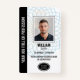 Fully customizable employee ID badge with a geometric background pattern. Personalize with your ID photo, employee number, job title, company name, logo and issue/expiration date. On the back you can add your barcode/QR code and additional information. This stylish template is ideal for various workplaces and professions such as private security guard, store security, personal bodyguard, official doorman, event security, corporate professional, retail employee, medical staff, small business pass, conference name tags and more. Printed colours: blue, gold, black and white. Shop the collection for more badges and tags for sale online, designed for the security service industry.