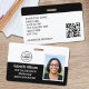Create a professional appearance with a branded employee ID badge. This editable template can be personalized with your profile photo, name, job title, company name, number, and logo. Return details are on the back, along with additional information, and a QR code. Perfect for creating a cohesive branding experience, or simply to verify the identity of the wearer and display their qualifications. This identification badge is ideal for customer-facing roles and corporate settings — from business consultants and retail stores to medical professionals, hospital staff, office workers, conference teams, corporate events and more. Custom badges build brand identity and enhance security. Printed colours: Black, grey and white. Horizontal format.