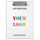 Custom Colours and Font - Clipboards with Your Logo Name Website Promotional Personalized Company Office Promotion Business or Personal Customizable Colours and Text Modern Gift - Add Your Logo - Image - Photo / Name - Company / Website or E-mail or Phone - Contact Information / Address - Resize and Move or Remove / Add Elements - Image / Text with Customization Tool. Choose / Add Your Favourite Background and Text Colours / Font. Please see my others projects / designs. You can also transfer this designs to more than 1000 Zazzle products.