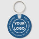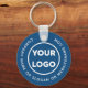 Cool blue keychains feature your company logo with white custom text circling around it on both sides. Makes a great promotional giveaway for customers. Replace the sample logo and text (website, slogan, &/or business name) with your own in the sidebar. White or light coloured logos will work best with this design. If you want the background colour to show through your logo, upload a version of your logo with a transparent background. Circle shaped logos will work best for the circular design area.