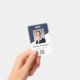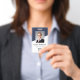 Easily personalize this custom employee name and photo badge with your own company logo and qr code or bar code. Available with different background colors and attachments. No minimum order quantity.