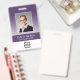 Easily personalize this purple custom employee name and photo badge with your own company logo and qr code or bar code. Available with different background colours and attachments. No minimum order quantity.