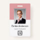 Easily personalize this custom pink employee name and photo badge with your own company logo and qr code or bar code. Available with different background colours and attachments. No minimum order quantity.