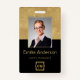 Easily personalize this custom gold employee name and photo badge with your own company logo and qr code or bar code. Available with different background colours and attachments. No minimum order quantity.