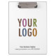 Personalize this acrylic clipboard with your company logo, business tagline, and other custom text. You can print on the front and back. This is a standard size clipboard with dimensions 12.5 inch x 9 inch. No minimum order quantity and no setup fee.