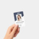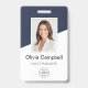 Add a touch of professional polish to your company's identity with this custom navy blue badge design. Featuring a chic, modern aesthetic with a two-toned diagonal split, it provides a sophisticated backdrop for your employee's photo and title. The clean, minimalist layout ensures your logo and information stand out, creating a memorable and stylish representation for any business.