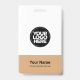 Easily personalize this Custom Administrative professional Name Badge without photo, with Scan Bar Code and large business logo. A simple business design in camel beige and white colours fully customizable in front and back sizes, sans-serif basic and modern fonts and a professional and clear look, perfect for small business employee, boss, guests. These business id badges supplies are avaiable with lanyard, metal clip or with retractable. No minimum order, but save money and enjoy Zazzle discounts by multiple orders!
