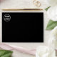 Make your correspondence look professional with black custom 5"x7" greeting card business envelopes branded with your company logo on the top left of the front. The back flap has a customizable printed return address. On the bottom of the back, you can add your website URL or your company's slogan. Replace the sample logo, address, and text with your own in the sidebar. Your logo can be circular, square, or another shape. This design will work best with logos which look good on a black or dark background. You can choose other envelope colours in the sidebar.
