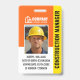 Construction ID badge with fully customizable text and scannable QR code. Branded photo badges give added security on a construction site or as identification at a trade show. This modern template includes your company logo, name, employee details, and contact details. All the text can be customized so you can include the information you want. Ideal for a wide range of businesses, including residential and commercial construction, management, general contractors, building contracting and design-build construction. Printed colours: orange, black, yellow and white. Orange is a popular colour for construction companies as it gives a feeling of optimism, creativity, and vision. Shop the collection for more popular product ideas and supplies for sale online, designed for the construction industry.
