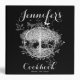 A black and white personalized cookbook featuring a family tree with butterflies design. Art by Amelia Carrie AZEZ - A to Z, EZ Gifts they will love. zazzle.com/AZEZcom