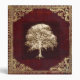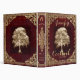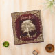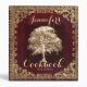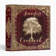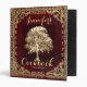 An antique leather book look personalized cookbook featuring a family tree design in gold. Art by Amelia Carrie