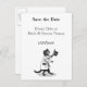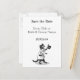 A custom Save the Date postcard with vintage letters and a black and white pen and ink drawing of a cat wearing glasses and a coat tipping his top hat. Click Customize It to change fonts, sizing, upload your own photo and more, even save your design for later.