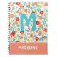 Custom Coral Blush Pink Aqua Blue Flower Pattern Notebook