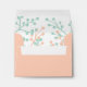 Use this custom coral or peach envelope in place of the generic white envelopes that come standard with all of the cards and invitation in the Rustic Floral Wedding Collection. This wedding rsvp envelope has a coral and mint green floral pattern on the inside and a pre-printed address on the front. You can easily customize the address on the product order page. The default size is 5 3/4" W x 4 3/8 H (A2) and fits the small greeting cards and invitations. You can order a different size by selecting "customize it" and "Choose your paper type and colour". A7 fits 5x7 invitations and cards. A6 is for the small invitation, but will also fit the small greeting card (note card). A2 is for the small greeting card (note card), but will also fit the small invitation. We also offer this envelope design without the printed address if you would rather write your own or use address labels.