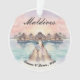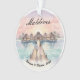 Commemorate your "Just Married" bliss or a dream tropical getaway with our Custom Watercolor Maldives Keepsake Ornament. This elegant, double-sided ceramic ornament features a breathtaking hand-painted style illustration of a couple walking toward a luxury overwater bungalow at sunset.