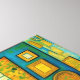 This painting is a colourful Cozy Living Room Scene with greens, blues, oranges, golds and yellow combining to make an artistic home canvas. The living room is a close comfortable living room with bright cheery, orange, green, blue and gold colours. The turquoise colours of the walls and windows are very pleasant. The bright red and orange colours of the pillows and chair are aesthetic. The wood colours and wood seem like wood. The painting contains a profusion of gold, tan and yellow colours that lighten and brighten the picture.
