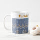 Get cozy this winter with a mug dressed in an ugly sweater. This hot winter warming mug features a blue & beige sweater pattern and the text 'Hugs & Hot Cocoa. You can edit the text and opt to replace existing name with your own. Personalize this mug for yourself or for someone special. Makes a great birthday and christmas gift.