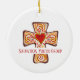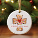 Celebrate your faith with this customizable Christmas ornament, perfect for your youth group or church group! Featuring a beautifully detailed cross with a red heart at its centre, this ornament symbolizes pride in Christianity and faithfulness. Surrounded by vibrant scrolls in shades of red, brown, yellow gold, and blue, the intricate design is both whimsical and joyful. The brown outline adds a unique touch, making this ornament a standout piece. Customize it for your church youth group or choir to share the message of faith in a fun and playful way. A perfect Christmas gift that reflects solidarity and devotion to Christian values!