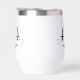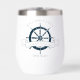 Chic custom cruise wine tumbler for an ocean liner that travels to the coast. This nautical themed design features a navy blue steering wheel to commemorate your summer trip. Personalize with your last name and year for a boat captain on the sea.