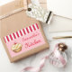 A cupcake and stripes decorate these cute bakery kitchen sticker. Personalize these stickers by changing the text to suit your needs. Use these cute pink cupcake stickers for a bakery, kitchen, baked goods, treats, gifts, party favours, gift bags, Valentine's Day, business, home, etc...The design is from original art.