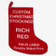 Custom printed customizable personalized SMALL 9" x 16" RICH RED FAUX LINEN CHRISTMAS STOCKING Blank Template. Design, create, make your own. Your photo, image, text, logo, graphics in full colour print on both sides of the stocking (Single sided print also available). Polyester fabric options: Faux Linen, Brushed Polyester, Coral Fleece. Sturdy sewn-in loop for hanging, machine washable. Made in USA.