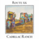 A vibrant watercolor creation capturing the iconic sight of colourful cars buried nose-down at the famous roadside art exhibit. The installation's name, Cadillac Ranch, is featured above the art, with Amarillo noted below. This unique sticker celebrates the quirky, artistic side of the Texas Panhandle and Route 66.
