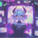 Gothic demon, cyberpunk fantasy, vampire anime, neon glow, bat wings, kawaii gothic, dark aesthetic, supernatural beauty, eerie television, anime girl.