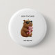 "Adorable chill capybara holding a pink teddy bear. Personalize this button pin with your own name or message for a unique gift!"