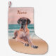 Custom Cute Great Dane Dog Sitting on Beach christmas Stocking.Cute Great Dane dog sitting on beach. Add name or any text as per your requirements.