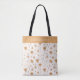 This tote bag features a delightful Halloween-themed floral pattern in warm autumnal shades, with cute illustrations of ghosts, pumpkins, and stars, all set against a soft beige background. The top portion is personalized with your name in a simple and elegant font, adding a personal touch to the design. The combination of earthy tones and whimsical Halloween elements makes this tote bag a perfect accessory for the season, whether you're heading out for Halloween festivities or just enjoying the fall vibes.