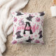 This custom pink and black Halloween throw pillow with a monogram features a cute pattern of pink ghosts, black dogs in witch hats, flying bats, stars, bows, pumpkins, and moons. Add a name and initial to make it your own. The soft colour palette adds a girly twist to spooky season, perfect for Halloween party decor, haunted nursery accents, or any cozy fall corner. Ideal for dog moms, kids’ rooms, or kawaii lovers.