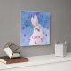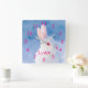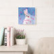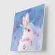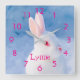 Animal print. Face and head close-up of a cute rabbit with red eyes and white fur. Blue backdrop colour (the rabbit is out in snow) Customize and add the girls name, pink coloured letters and clock numbers.