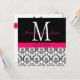 Custom Damask Monogram Wedding Invitation Hot Pink