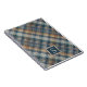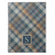 Contemporary tan, brown, beige, taupe and dark teal blue tartan plaid pattern. With room to customize or personalize with a name monogram or initial of your choice.