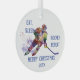 Custom Dated Christmas Eat Sleep Hockey Repeat Fun Glass Ornament