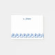 Custom sticky notes with art deco blue letters and a graphic line of blue racing sailboats along the bottom.