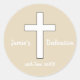 Simple Dedication sticker with just name, occasion and date with a white cross. Fully customisable.