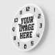 Custom, create your own wall clock. Clock comes predesigned with numbers and semi-translucent circular graphic underneath. Simply add your own photo, graphic or text to create your unique, one-of-a-kind wall clock. Black numbers design - looks best when the image you add is lighter.