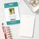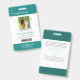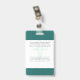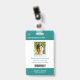 Your Health Care Company personalized Logo Photo Clip Name Badge for doctor, surgeon, nurse, dentist, employee, volunteer and any medical profession with caduceus medicine symbol on the back side. With custom Photo, Logo, Bar Code, Name, Department and additional informations. A fresh, sophisticated and clear design in teal turquoise green, light grey and white, with sans-serif fonts. Use this modern name tag badges for all of your staff for keeping any important informations with them in a simple way. Photo by Humberto Chavez.
