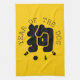 Customizable Black ideogram of dog on yellow kitchen towel. Perfect for Chinese New Year of the Dog 2018 or Birthday (people born in Dog Year = you can easily change year and colour of the ideogram by clicking the customize button). ----- "The Dog (狗) is one of the 12-year cycle of animals which appear in the Chinese zodiac related to the Chinese calendar. The Year of the Dog is associated with the Earthly Branch symbol 戌. The character 狗 refers to the actual animal while 戌 refers to the zodiac animal. (...) People born within these date ranges can be said to have been born in the "Year of the Dog", while also bearing the following elemental sign: