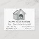 Promote your dog kennel or pet care business with this clean and professional Happy Tails Kennel business card design. Features a simple doghouse illustration and customizable text for your kennel name, contact info, and services. Perfect for dog boarding, daycare, grooming, and pet sitting businesses. Easy to personalize and ideal for creating a trustworthy, friendly brand image.
