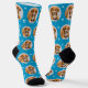 Show your love for your puppy dog or cat with these fun and cozy custom-printed socks! Our premium crew socks feature a pattern of your favourite pet photo along with small white paw prints. Create your own by simply adding your picture to the round placeholder image. Makes a great gift idea and stocking stuffer! Photo tip: crop your photo to a square shape prior to upload so it is centred within the round space. The blue background colour can be modified.