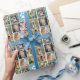 This beautiful custom dog photo wrapping paper is personalized with adorable pictures of your sweet pup for your birthday. Customize this chic gift with your own custom pet photographs around a cute blue square with a pretty white paw print and your own text in the centre.