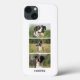 A simple, minimal and modern dog photo collage iPhone 13 case featuring three photos of your dog with their name in a modern font. Simple to customize by adding three of your own photos and your dog's name, the background and text colour can also be changed if preferred. Perfect as a gift for Birthday, Christmas, or just because.
